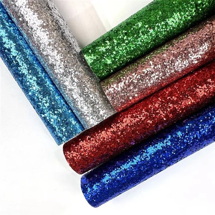 - Pu chunky Glitter Faux Leather هي مادة فريدة وجذابة أصبحت شائعة بشكل متزايد في السنوات الأخيرة. تتكون هذه المادة الساحرة من مزيج من البولي يوريثان واللمعان ، مما يؤدي إلى مظهر لامع وبريق مثالي لمجموعة واسعة من الأزياء والأدوات الزخرفية.